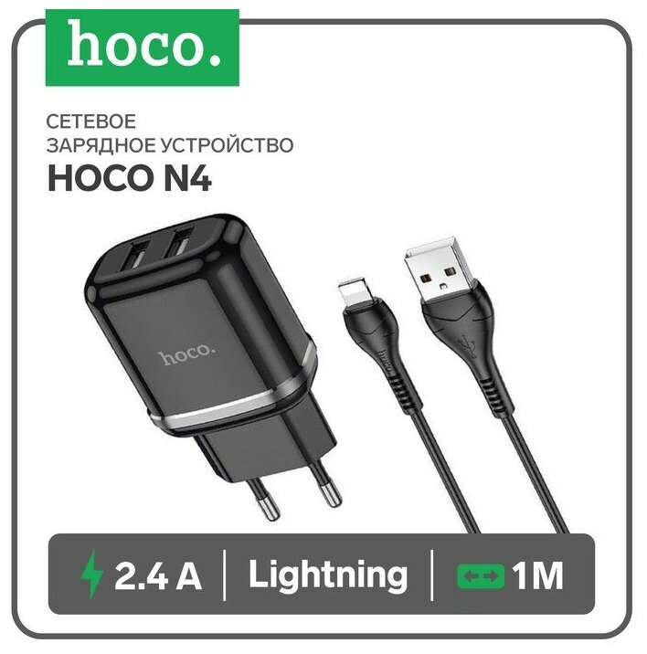 СЗУ Hoco N4 Aspiring, два порта USB, с кабелем Lightning 8-pin, черный