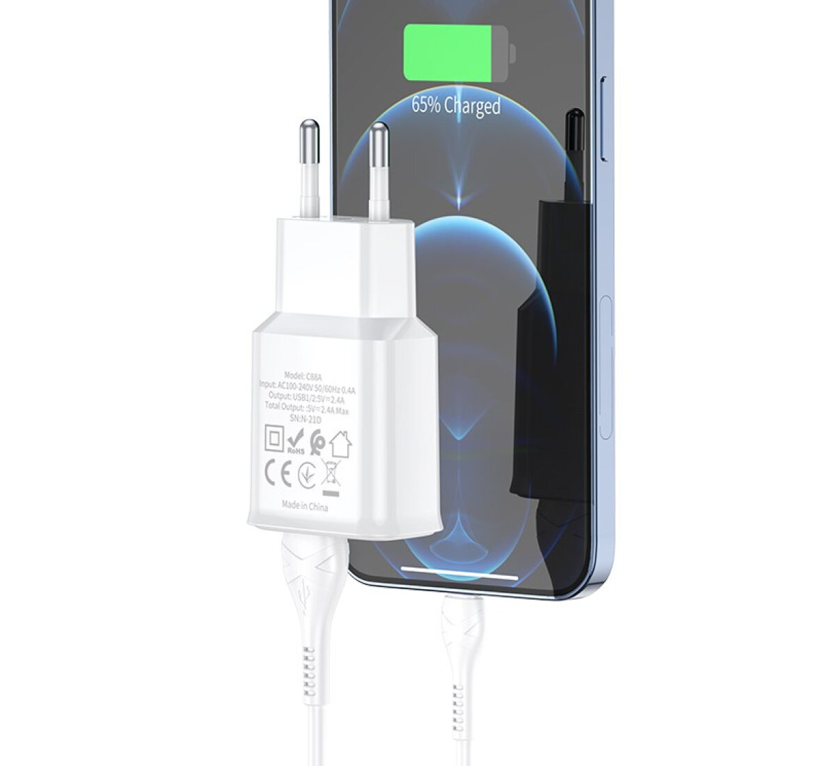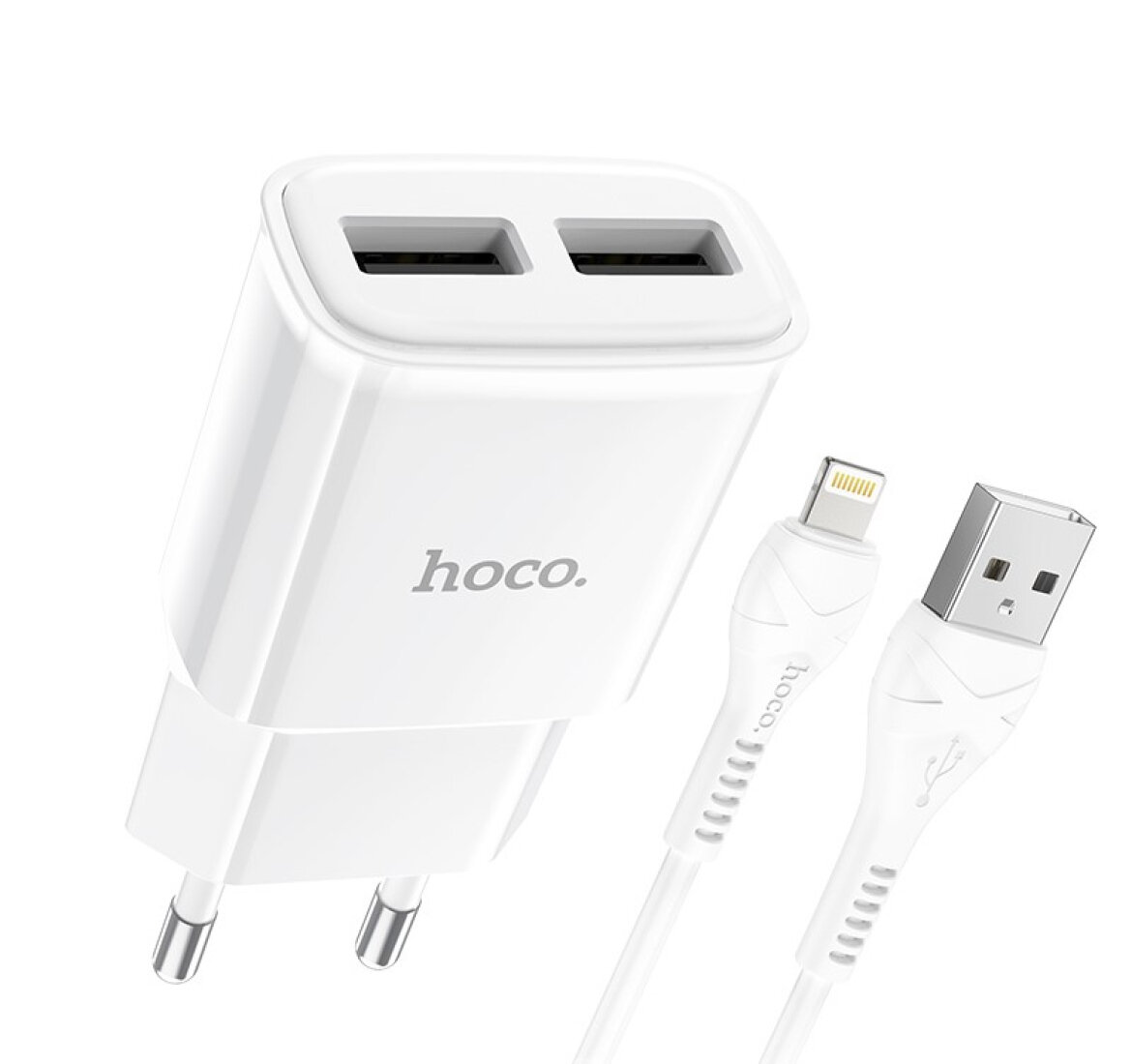 Купить Сетевое зарядное устройство, 2 USB 2.4A (C88A), HOCO, Lightning, белый