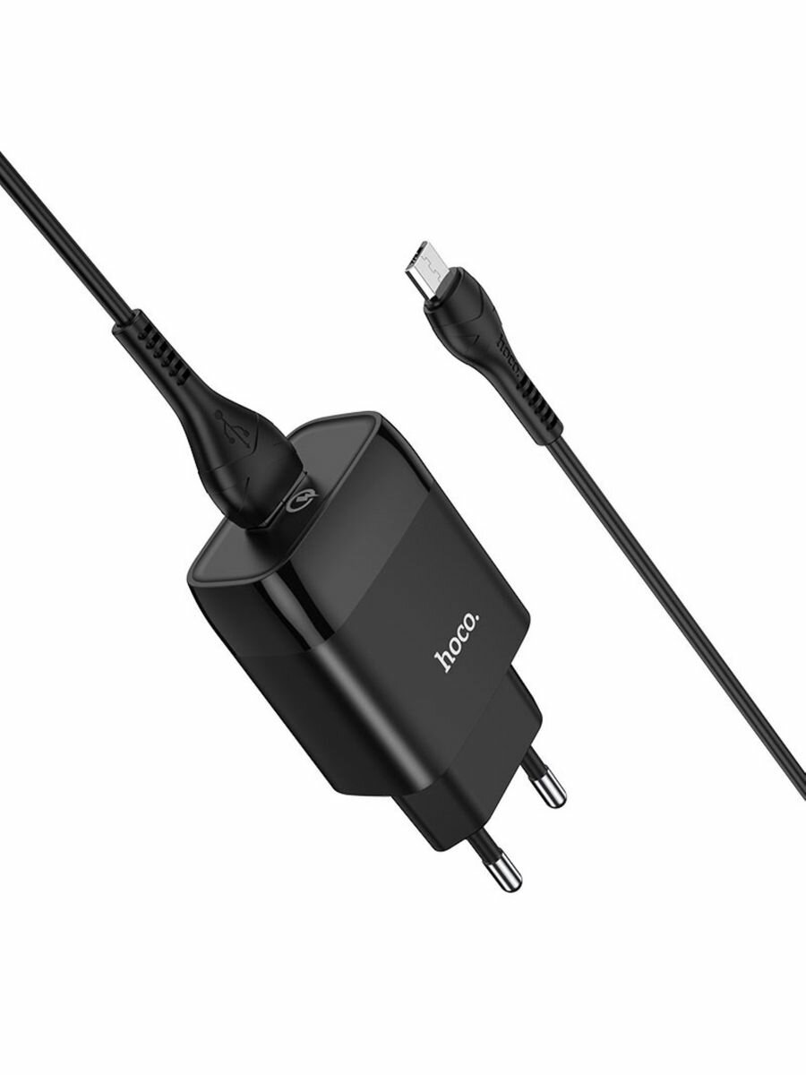 Сетевое зарядное устройство (СЗУ) Hoco C72Q (USB) + кабель Type-C, 3 А, черный