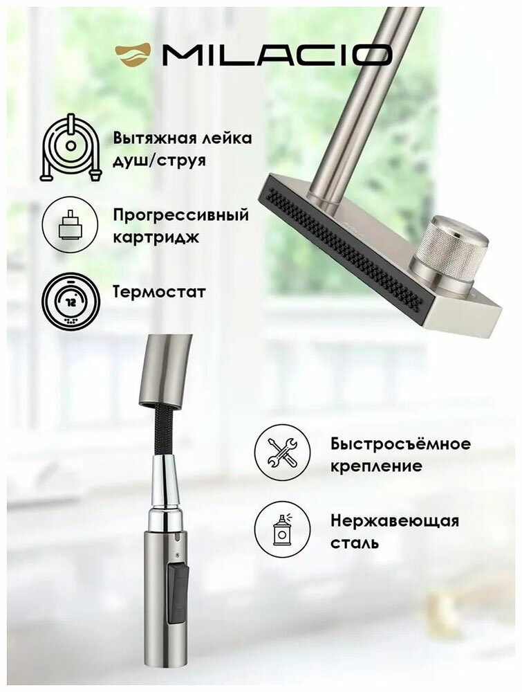 СохранитьСмеситель для кухни с вытяжной лейкой и каскадным душем Milacio Ultra MCU.556.SS сталь нержавеющая интересное: