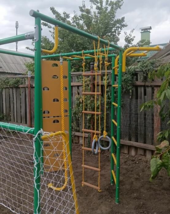 | В комплекте | баскетбольное кольцо, веревочная лестница, ворота, гимнастические кольца, канат, рукоход, скалолазная стенка, турник |