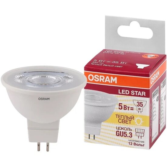 Ниже Вы можете прочитать отзывы на Лампочка Osram / Ledvance LED STAR MR16 35 36 5W/3000 K 12V GU5.3, питание 12 вольт (10 шт.), ознакомится с подробными характеристиками, посмотреть интересные обзоры и фотографии на Лампочка Osram / Ledvance LED STAR MR16 35 36 5W/3000 K 12V GU5.3, питание 12 вольт (10 шт.).