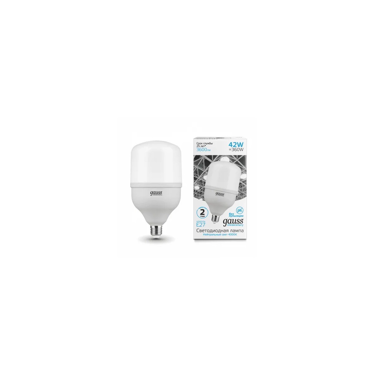 Лампа LED GAUSS E27, цилиндр, 42Вт, T120, одна шт. [63224]