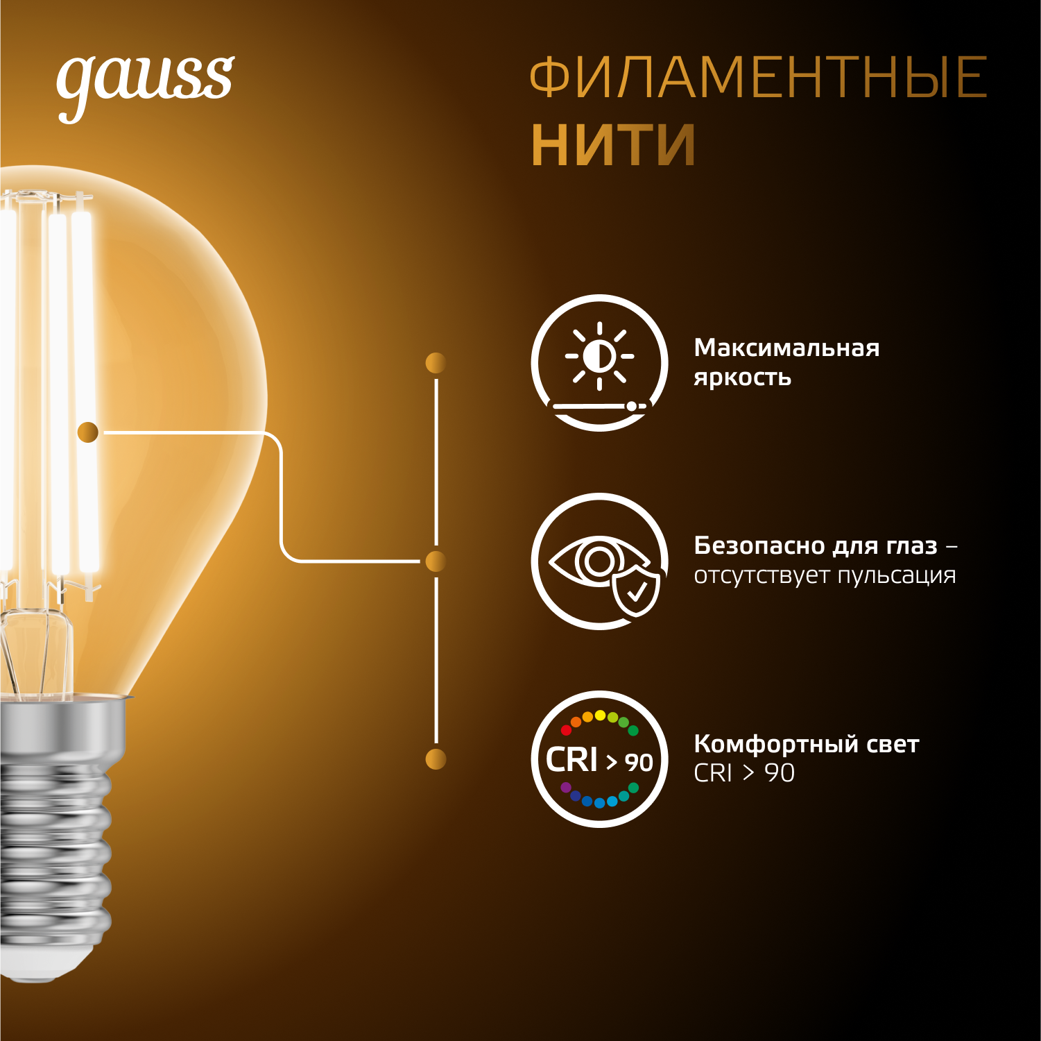 Набор из 10 штук Лампа Gauss Filament Шар 7W 550lm 2700К Е14 LED 1/10/50
