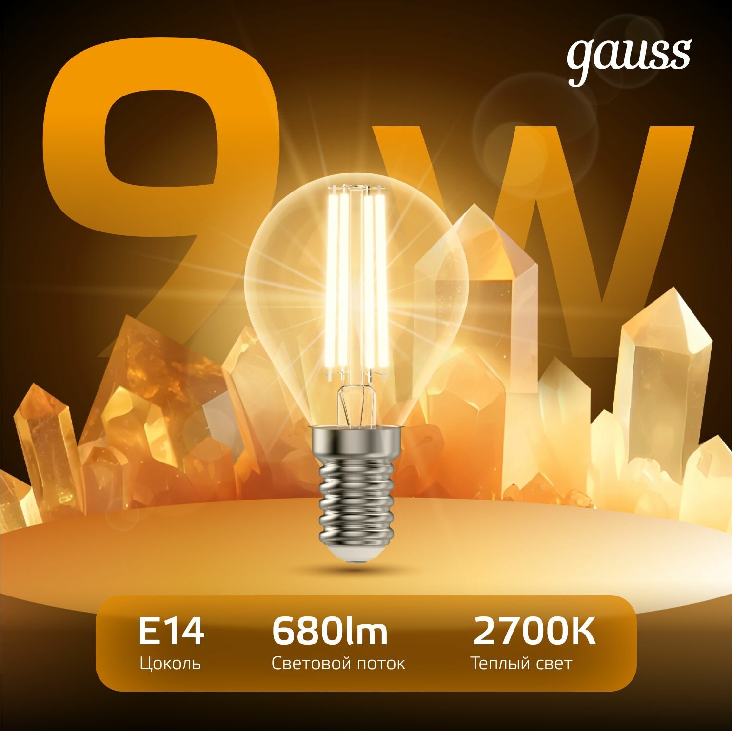 Купить Лампочка светодиодная E14 Шар 9W теплый свет 2700K упаковка 10 шт. Gauss Black Filament