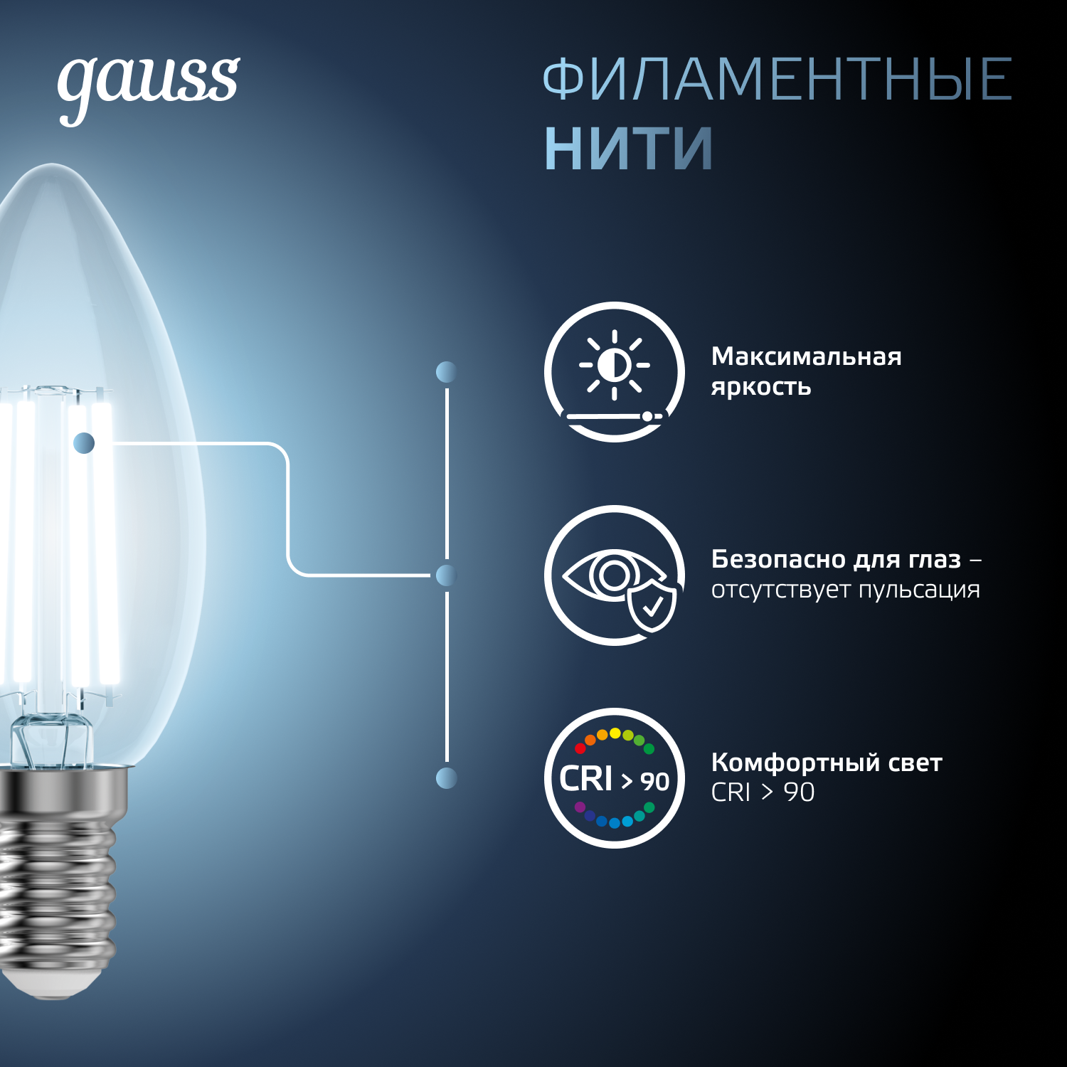 Лампа филам. Gauss 11Вт цок.:E14 свеча 220B 4100K св.свеч.бел.нейт. C37 (упак.:10шт) (103801211)