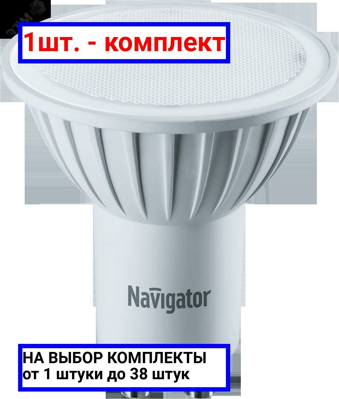 (5 шт.) Светодиодная лампочка Navigator PAR16, мощность 3 Вт, напряжение питания 220 В, цветовая температура 3000 K, теплый белый свет, цоколь GU10, размер 50х59 мм, NLL-PAR16-3-230-3K-GU10