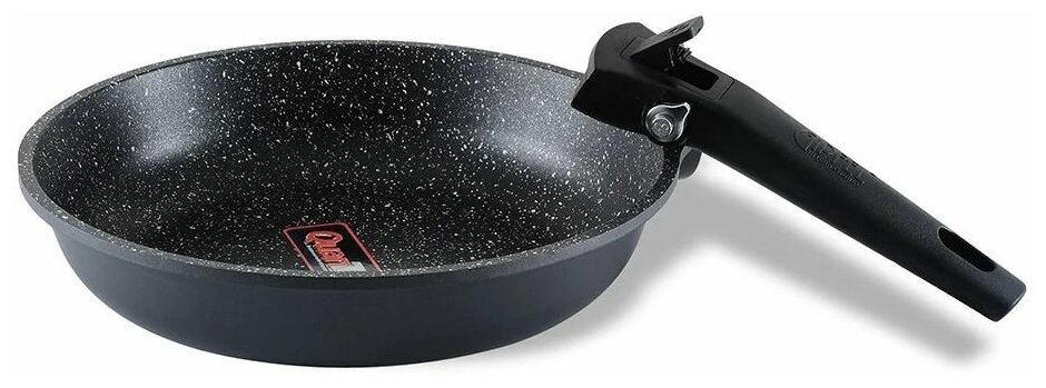 | Плюсы: | Подходит для индукционной плиты, хорошее антипригарное покрытие, съемная ручка фиксируется надежно. |