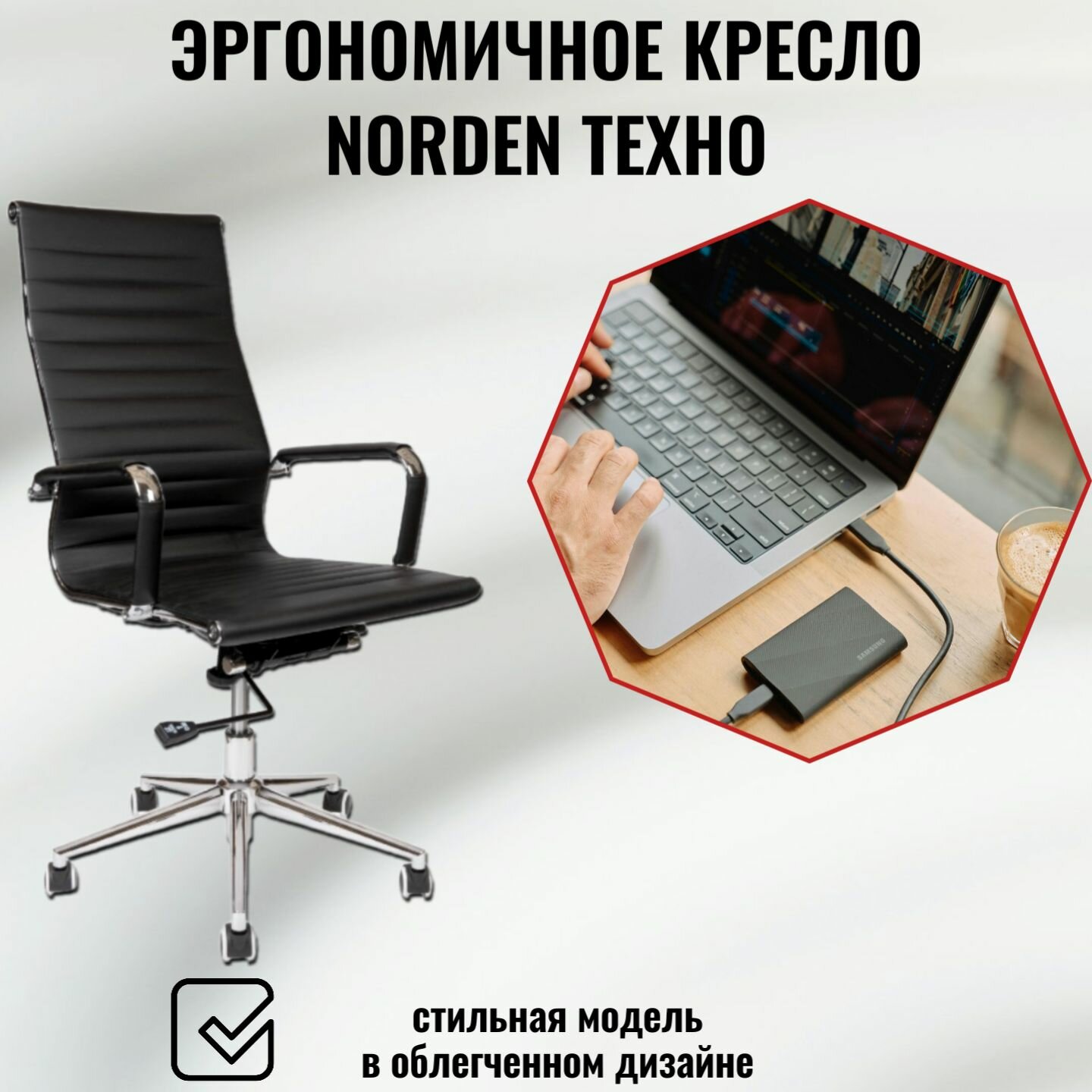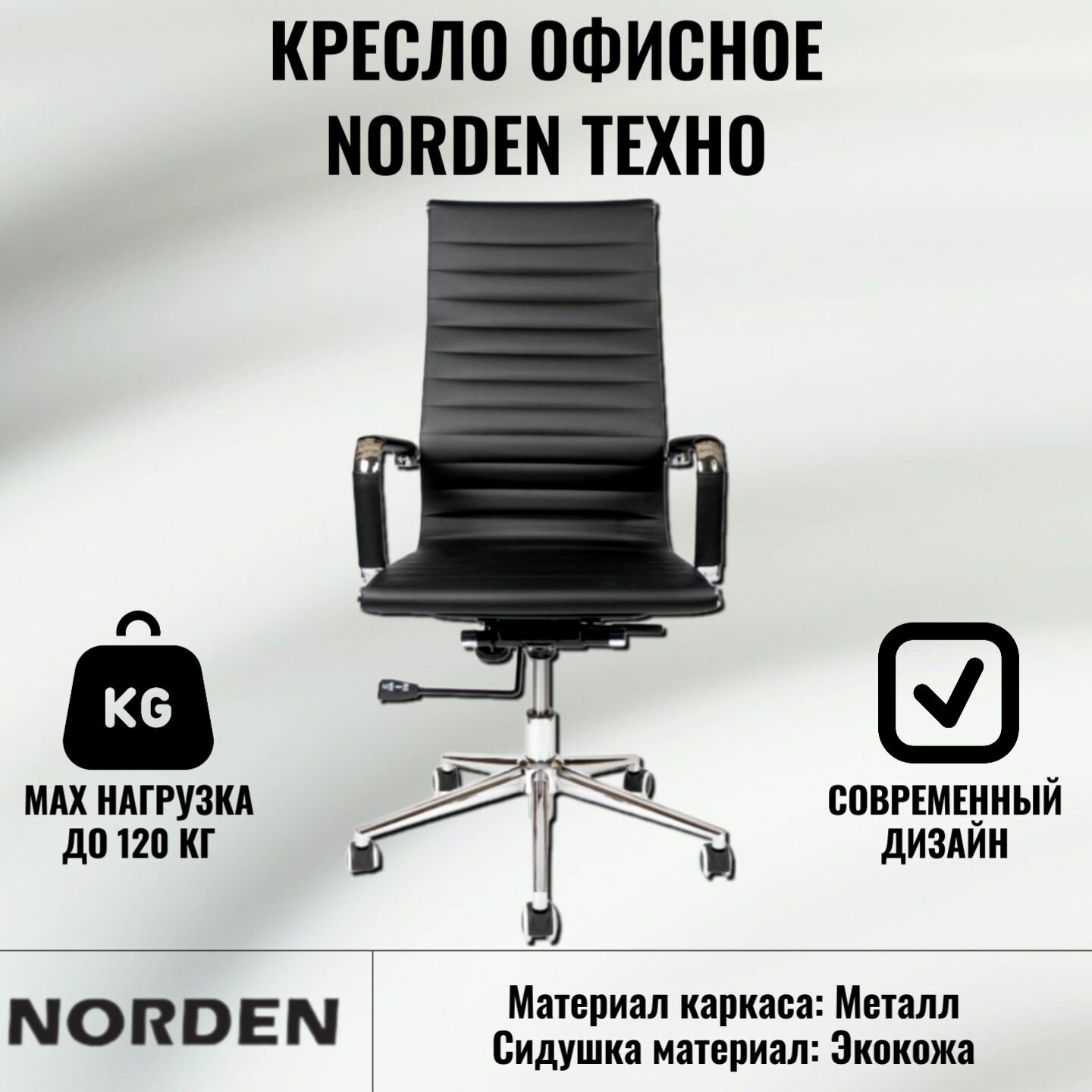 Кресло офисное Norden Техно - черная экокожа