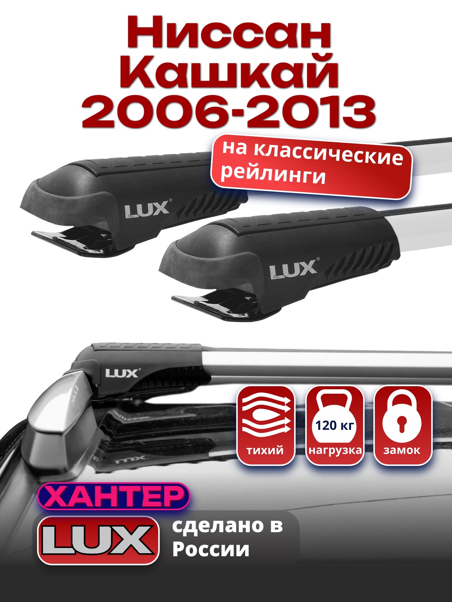 Багажник на крышу Ниссан Кашкай 2006-2013 на рейлинги, LUX хантер интересное: