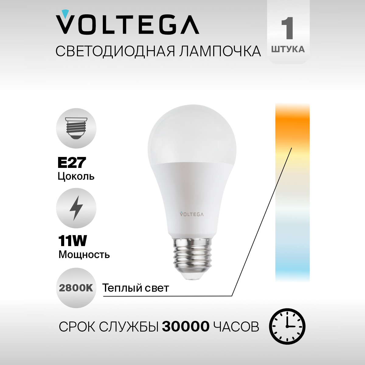 Купить Лампочка светодиодная E27 форма груши 11W теплый свет Voltega Simple А60 2800K 1 штука