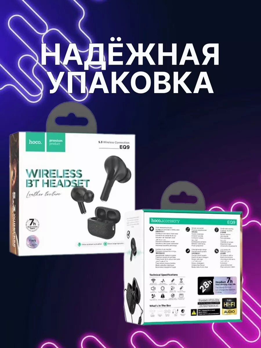 Беспроводные наушники EQ9 Plus, HOCO, вакуумные, черный