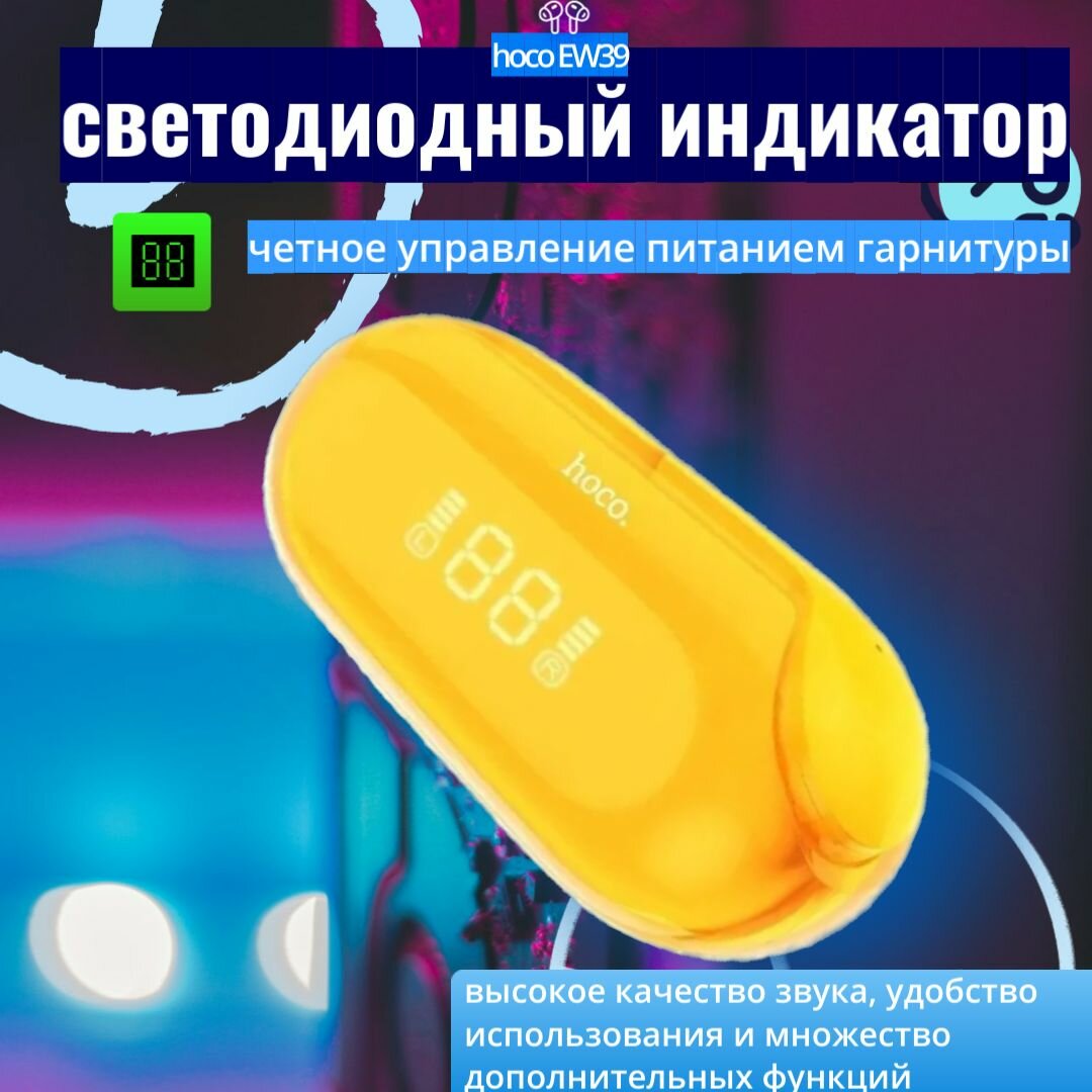 Беспроводные наушники EW39, HOCO, вакуумные, желтые