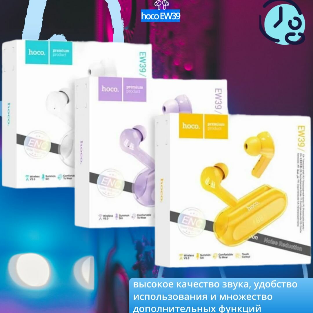 Ниже Вы можете прочитать отзывы на Беспроводные наушники EW39, HOCO, вакуумные, фиолетовые, ознакомится с подробными характеристиками, посмотреть интересные обзоры и фотографии на Беспроводные наушники EW39, HOCO, вакуумные, фиолетовые.