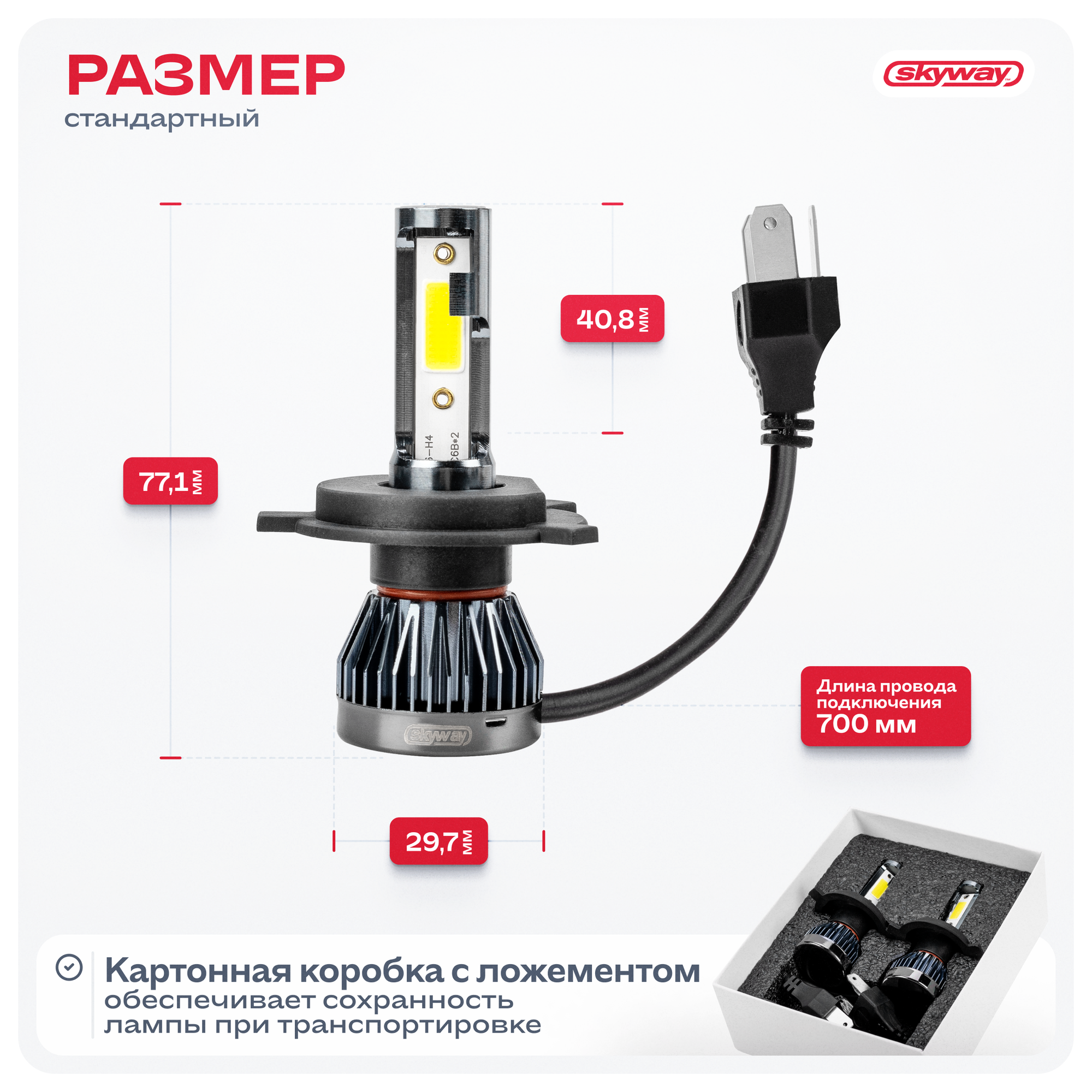 Лампа светодиодная H4 13 Вт 12-24 В 1500lm 6000K головного света Mini 2 шт. Skyway SKYWAY S08701010 | цена за 1 шт