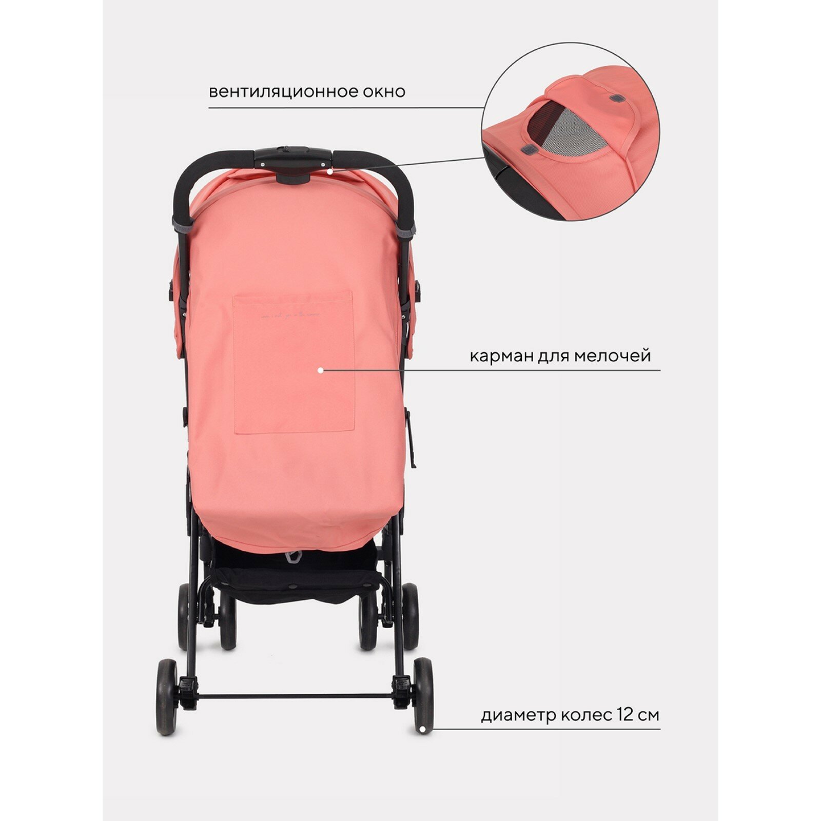 Коляска прогулочная детская RANT basic «UNO», складывается в трость, цвет Cloud pink