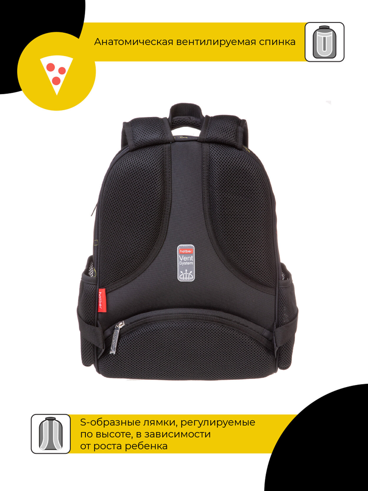Hatber Рюкзак каркасный 38 х 29 х 12,5 см, Hatber Ergonomic light "All you need…", чёрный/жёлтый NRk_71035