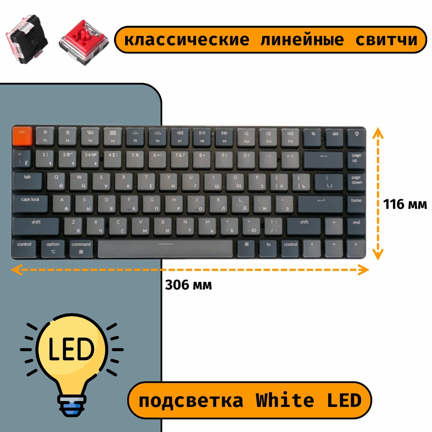 Беспроводная механическая ультратонкая клавиатура QMK Keychron K3 Pro, 84 клавиши, RGB-подсветка, Gateron Red Switch