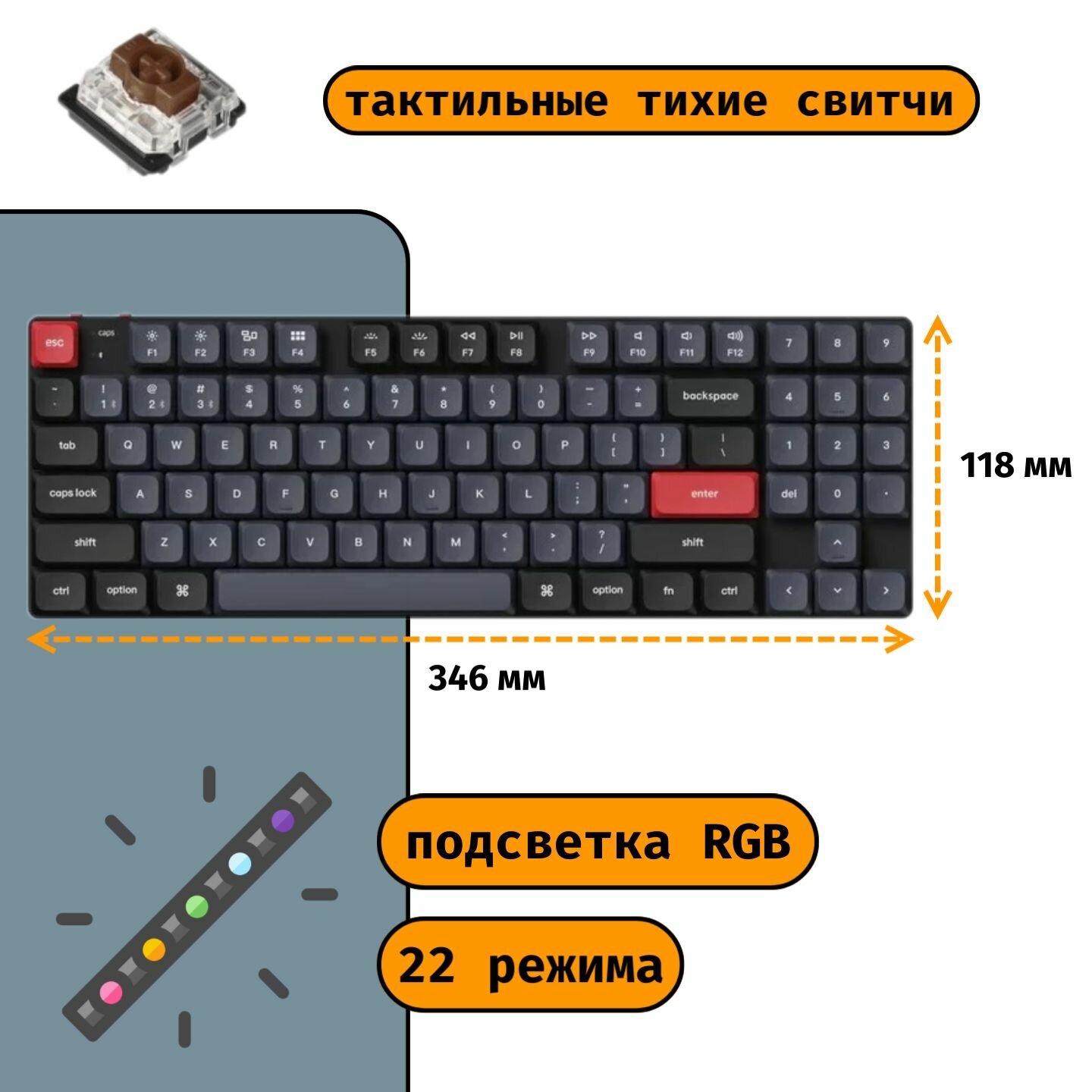Беспроводная механическая ультратонкая клавиатура Keychron K5SE, Full Size, RGB подсветка, Brown Switch