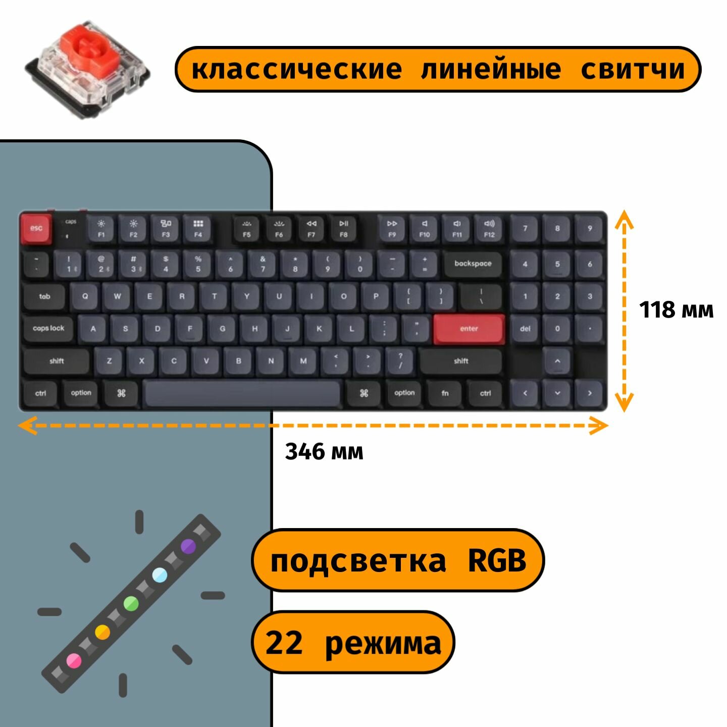 Беспроводная механическая ультратонкая клавиатура Keychron K5SE, Full Size, RGB подсветка, Red Switch