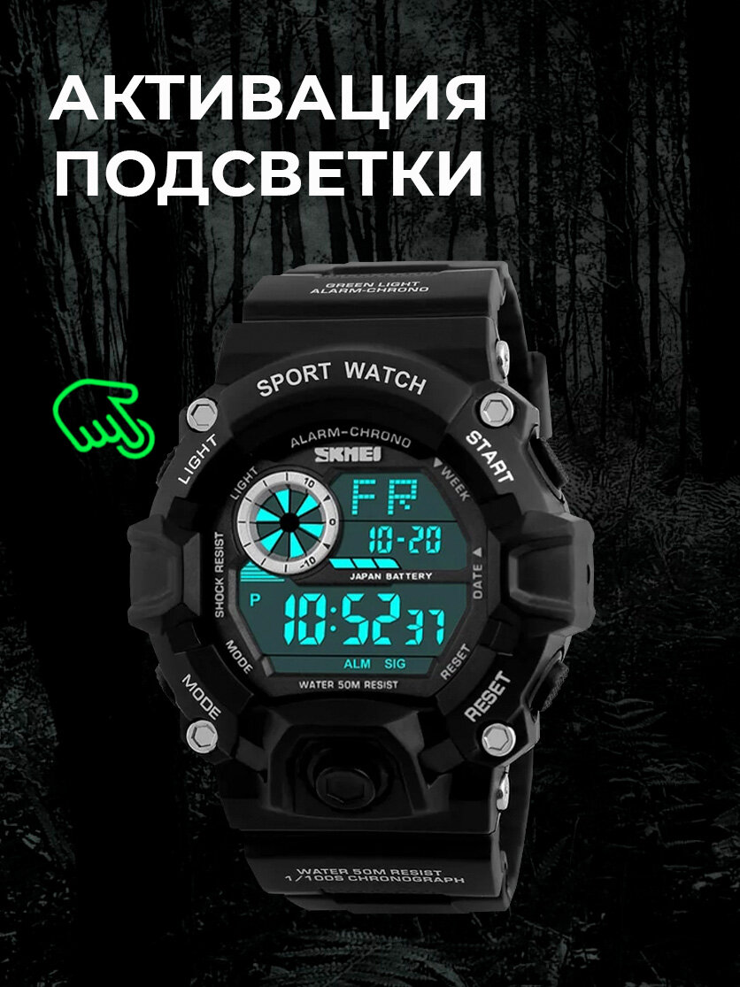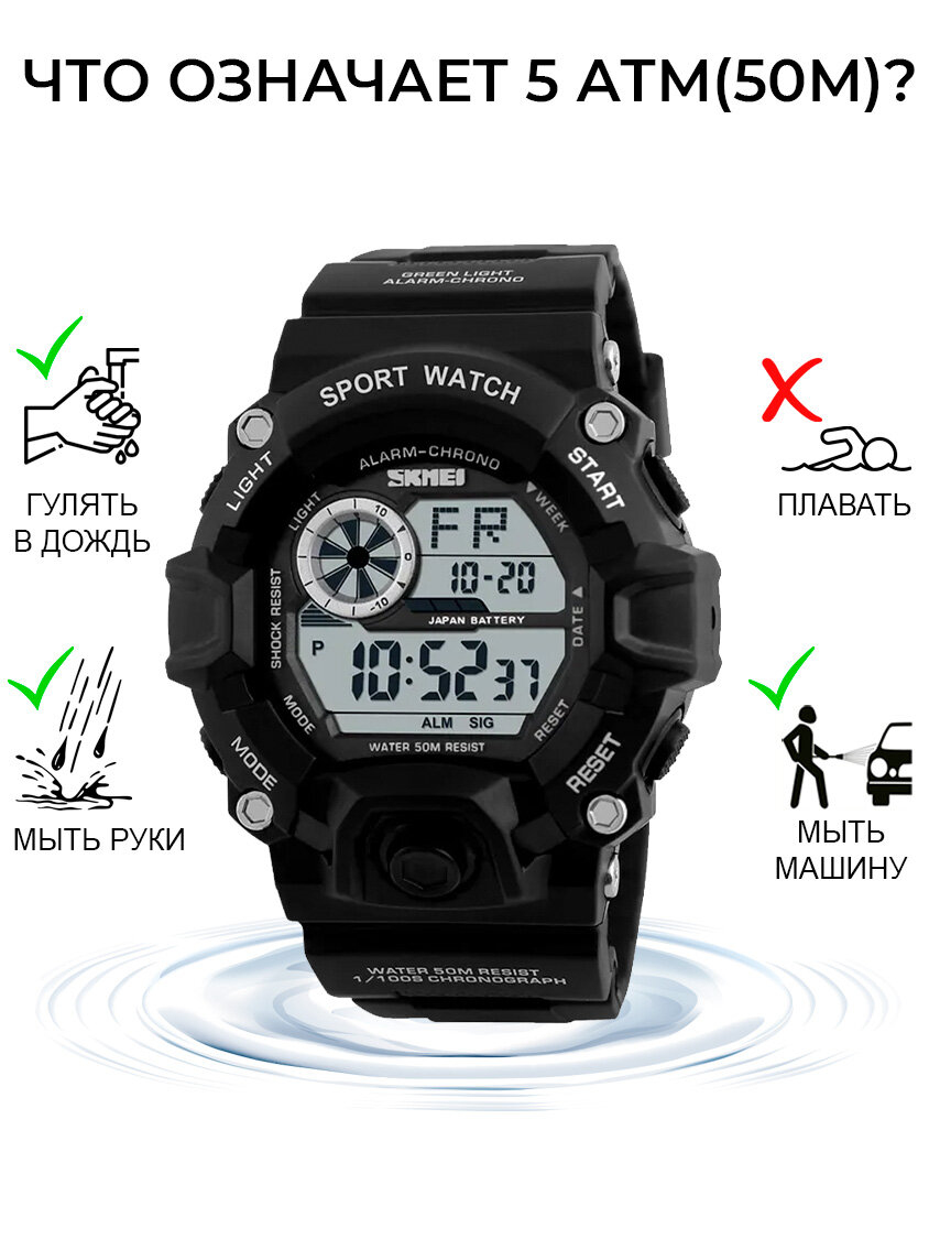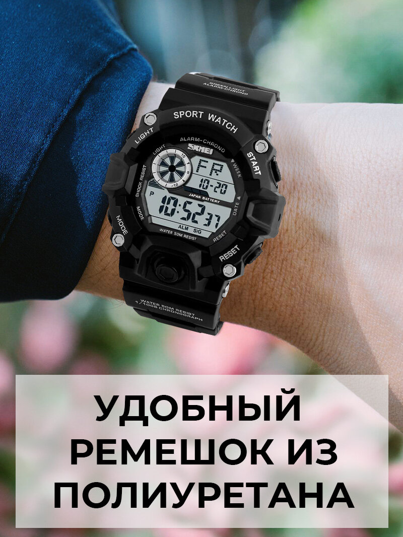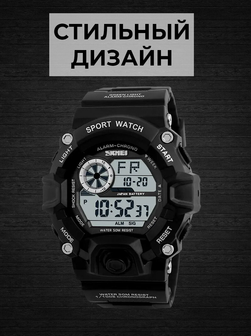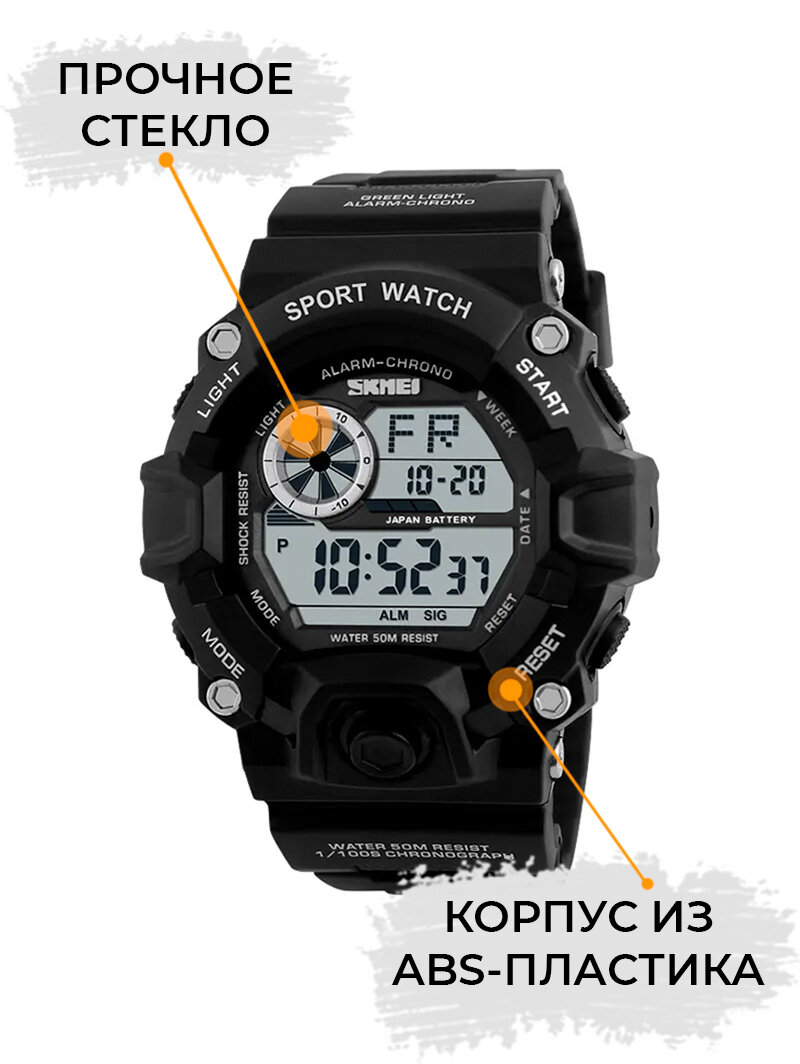 Часы наручные мужские Skmei/Скмей спортивные, электронные, противоударные, водонепроницаемые, черные интересное: