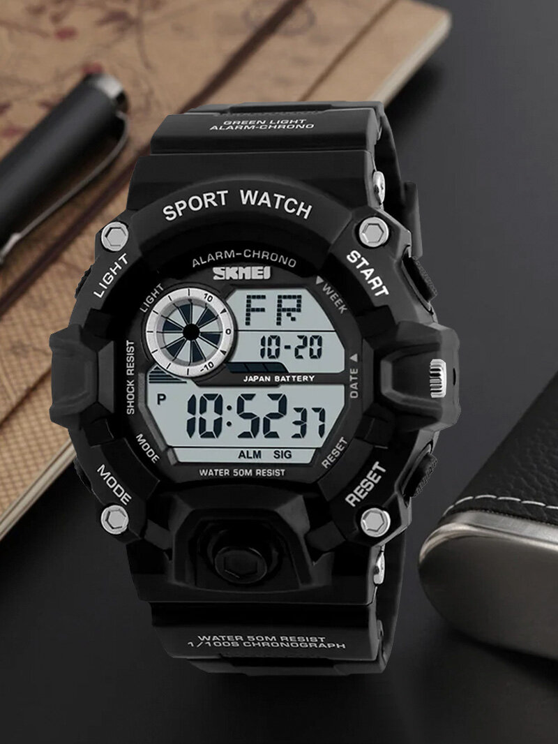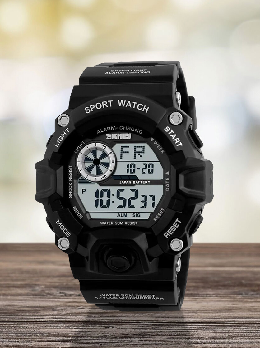 Купить Часы наручные мужские Skmei/Скмей спортивные, электронные, противоударные, водонепроницаемые, черные