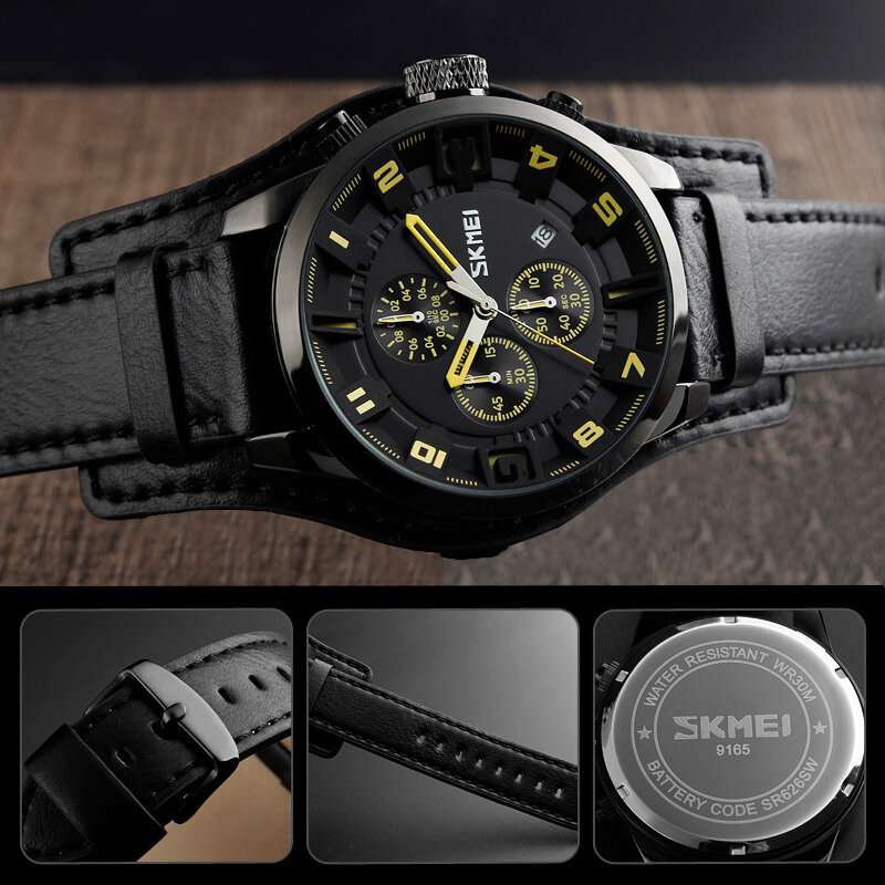 Часы мужские Skmei/Скмей 9165, водонепроницаемые, классические, черные/желтые