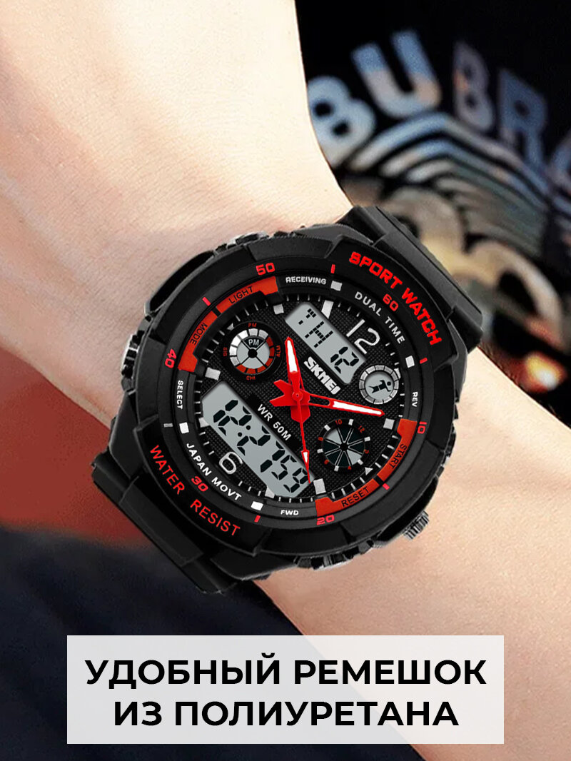Часы наручные детские электронные SKMEI водонепроницаемые, с будильником и секундомером, красные интересное: