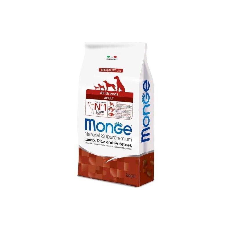 Корм Monge Speciality Line Adult All Breeds для взрослых собак всех пород, ягненок с рисом и картофелем 12кг