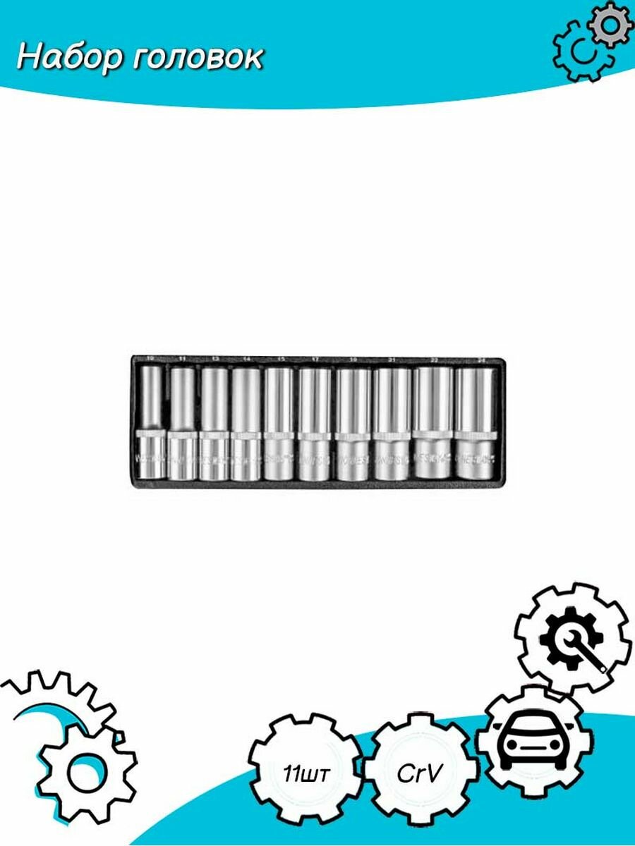 Набор головок торцевых глубоких 1/2"DR, 10-24 мм, 11 предметов Jonnesway