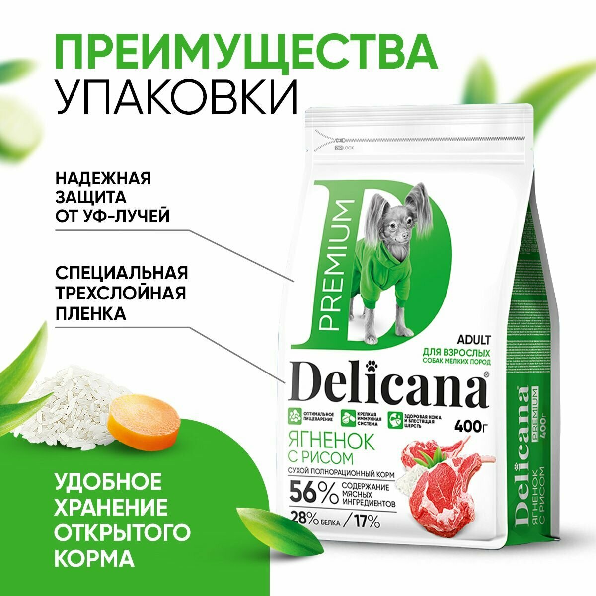 DELICANA Корм сухой для собак мелких пород Ягненок с Рисом, витаминами, минералами и микроэлементами 400 гр
