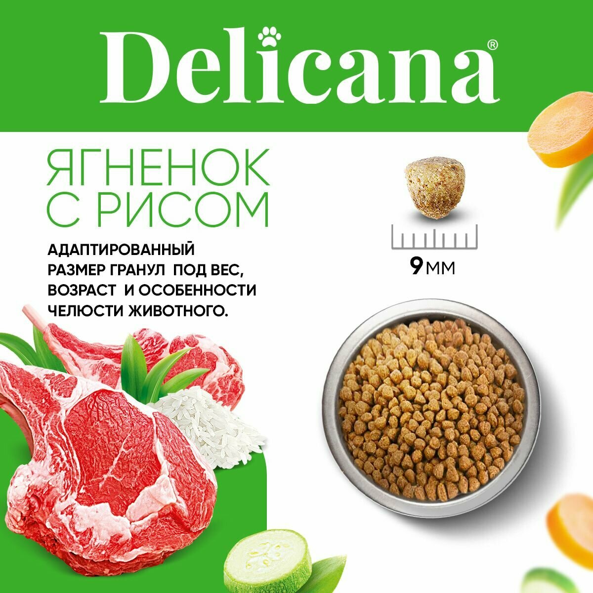 Сухой корм Delicana для щенков мелких пород, ягненок с рисом, 8 кг