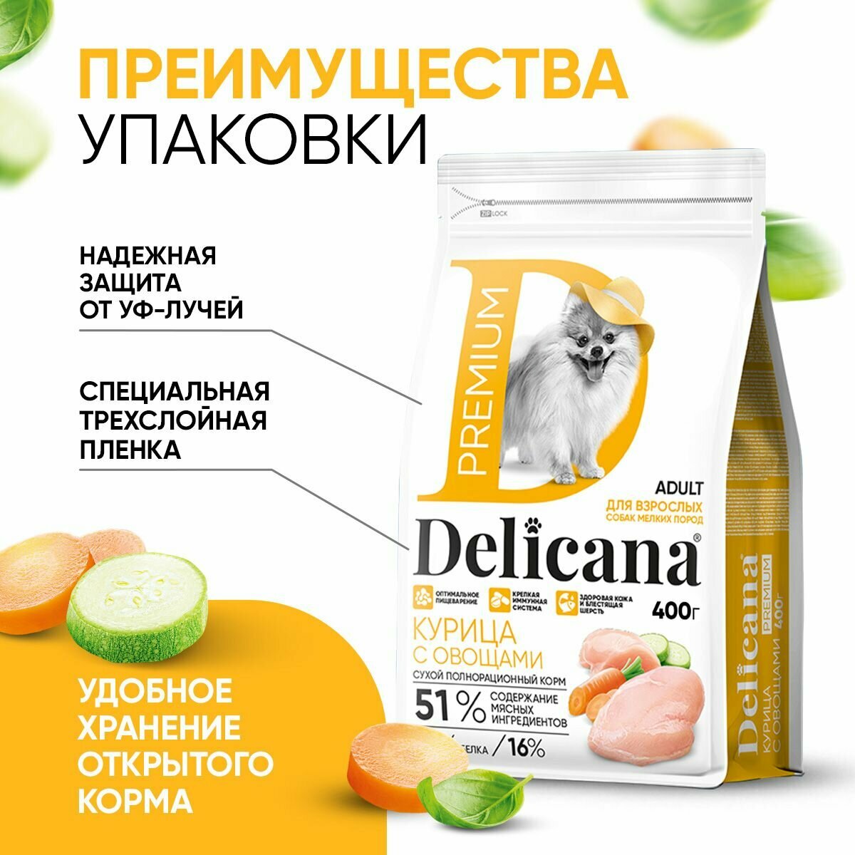 DELICANA Premium Сухой корм для собак мелких пород, курица с овощами, 1,5 кг