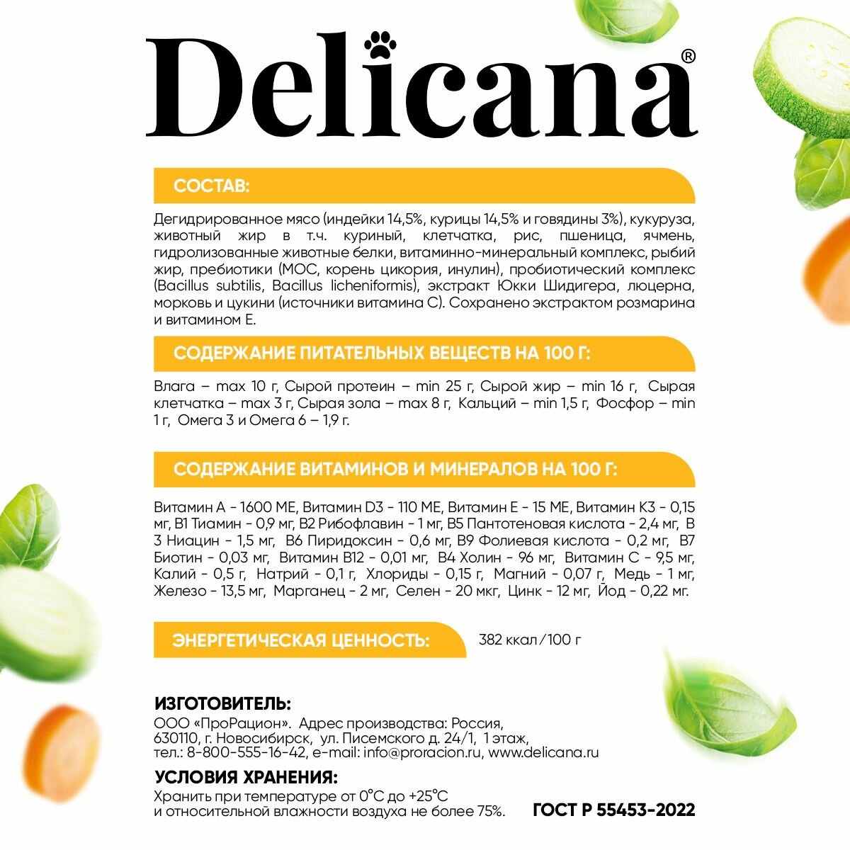 DELICANA для собак средних пород (курица с овощами) (вес: 15, упаковка: 15 кг.)