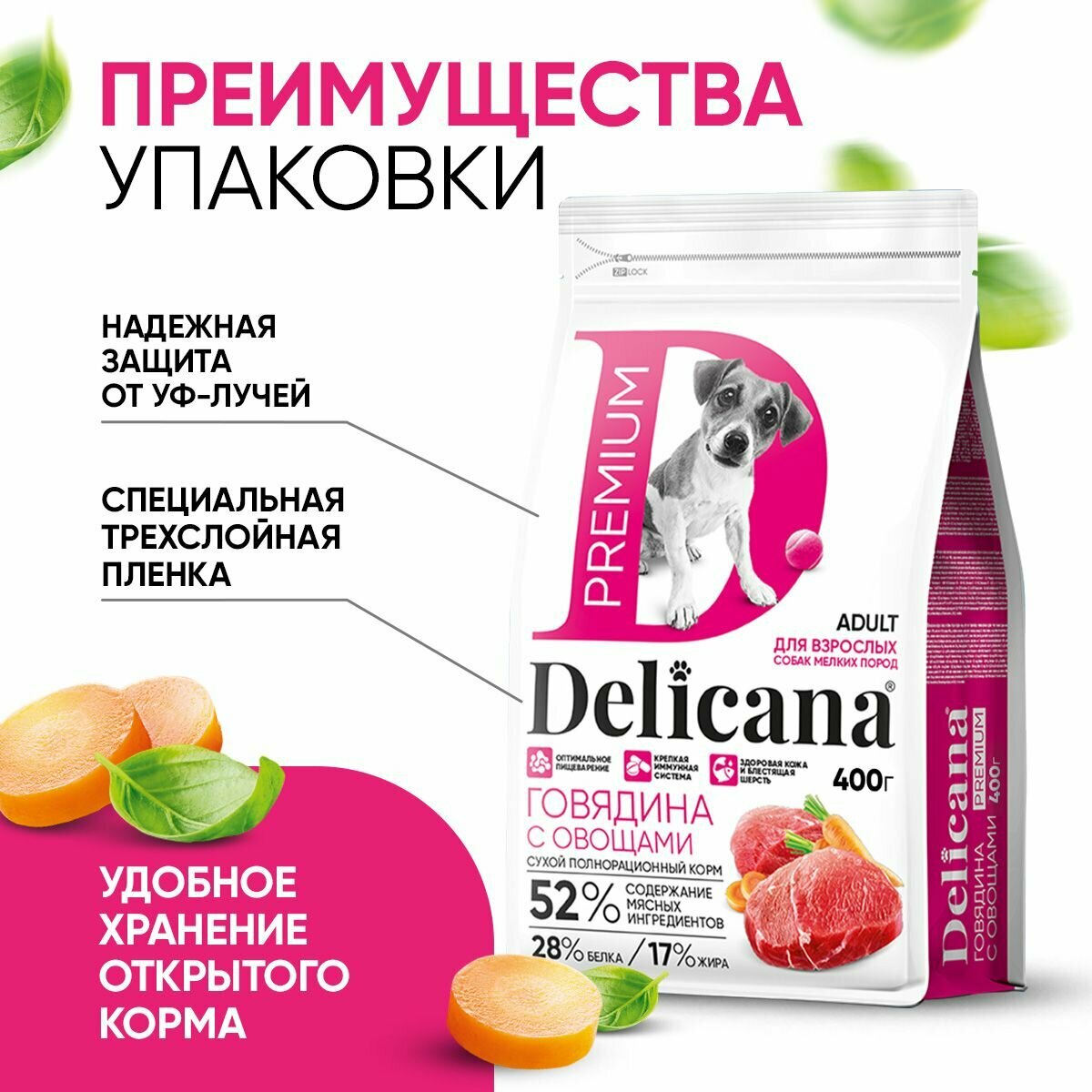 Купить Корм сухой Delicana для собак мелких пород Говядина с овощами 400 гр