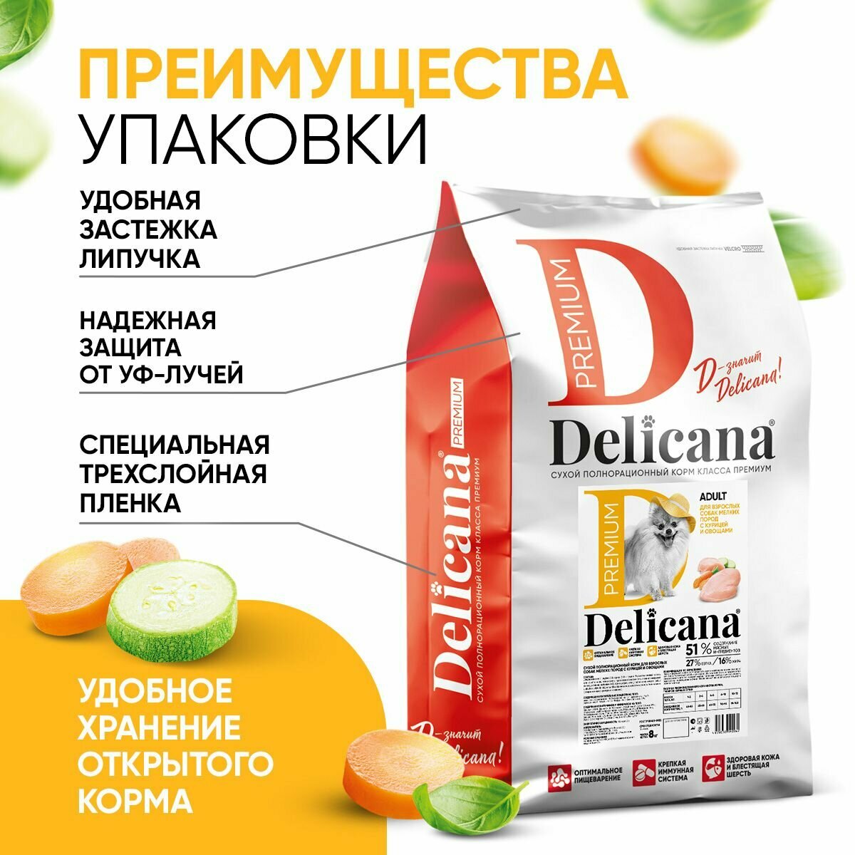 СохранитьDELICANA для собак мелких пород (курица с овощами) (упаковка: 8 кг., вес: 8) интересное: