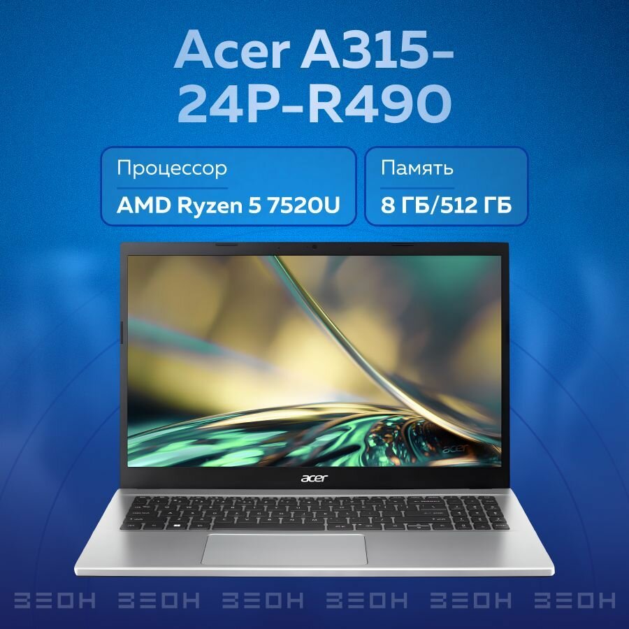 Ноутбук Acer Aspire A315-24P-R490 Silver NX.KDEER.00E (AMD Ryzen 5 7520U 2.8 Ghz/8192Mb/512Gb SSD/AMD Radeon Graphics/Wi-Fi/Bluetooth/Cam/15.6/1920x1080/No OS)