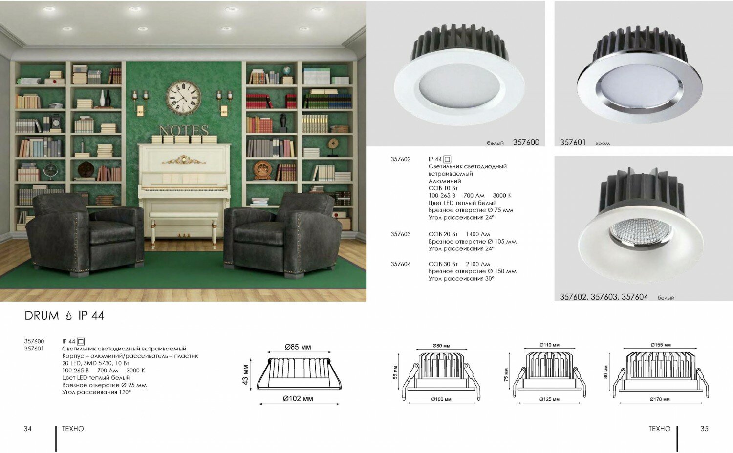 Встраиваемый светодиодный светильник | NOVOTECH | DRUM | 357602 | LED | 3000K | белый | алюминий | IP44 |