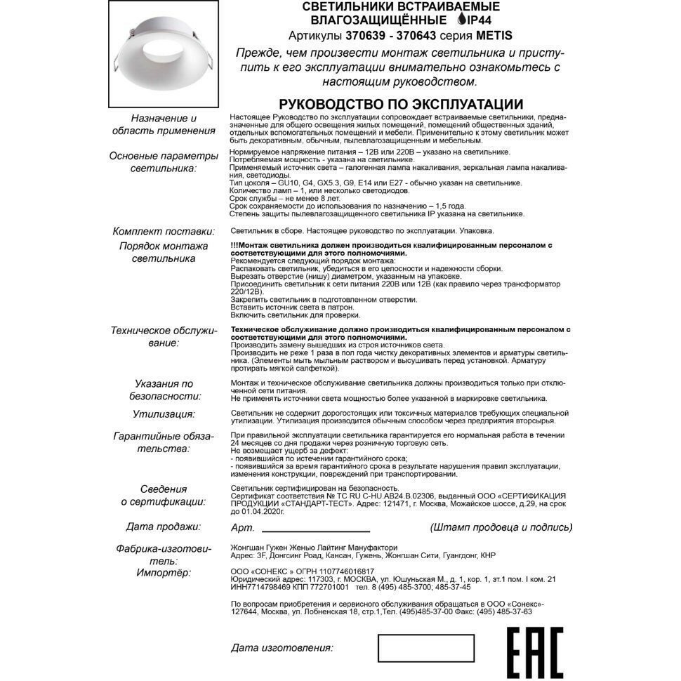 Novotech Встраиваемый светильник Novotech Metis 370640