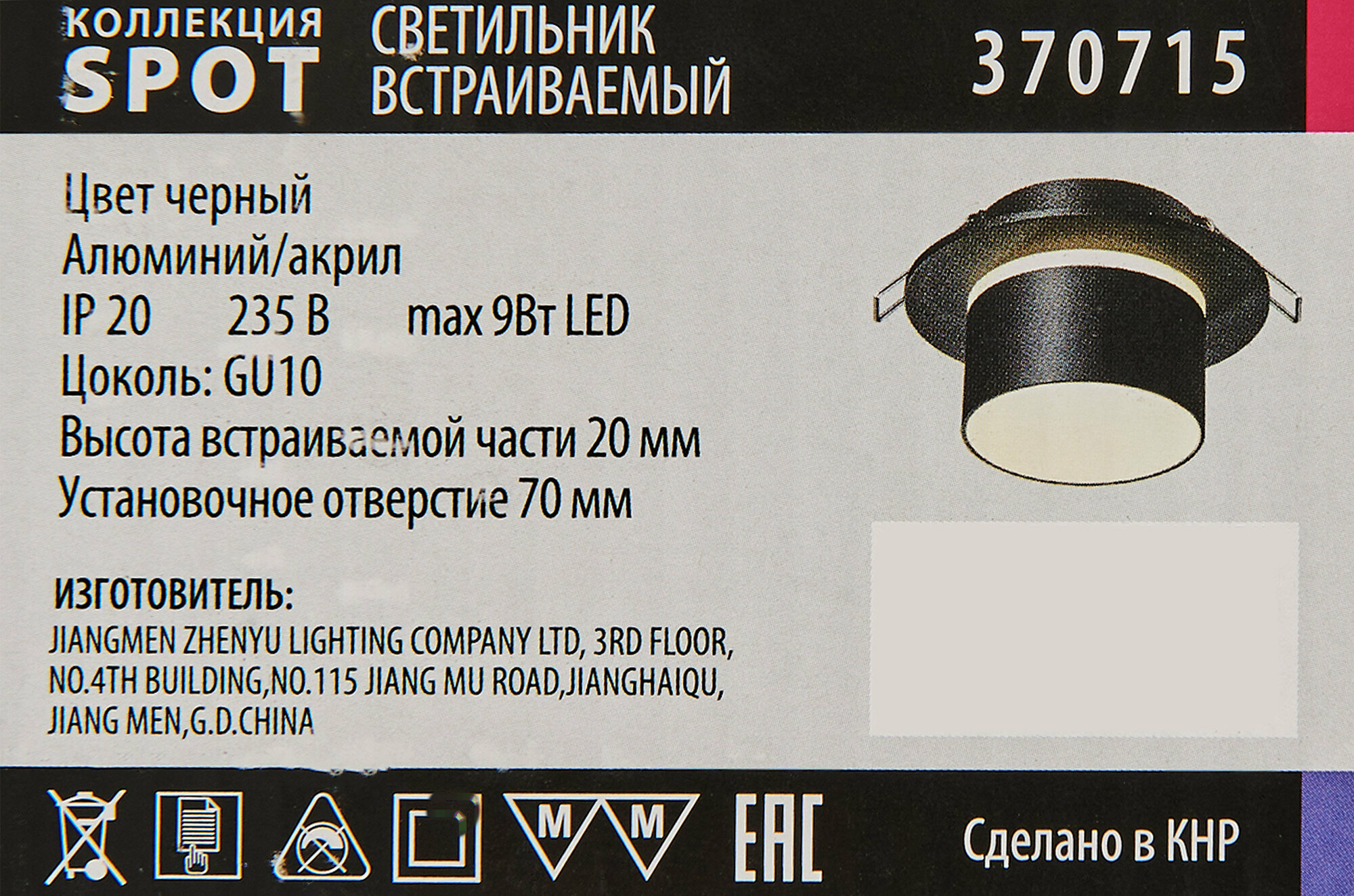 | Комплектация | Встраиваемые светильники Novotech 370720 |