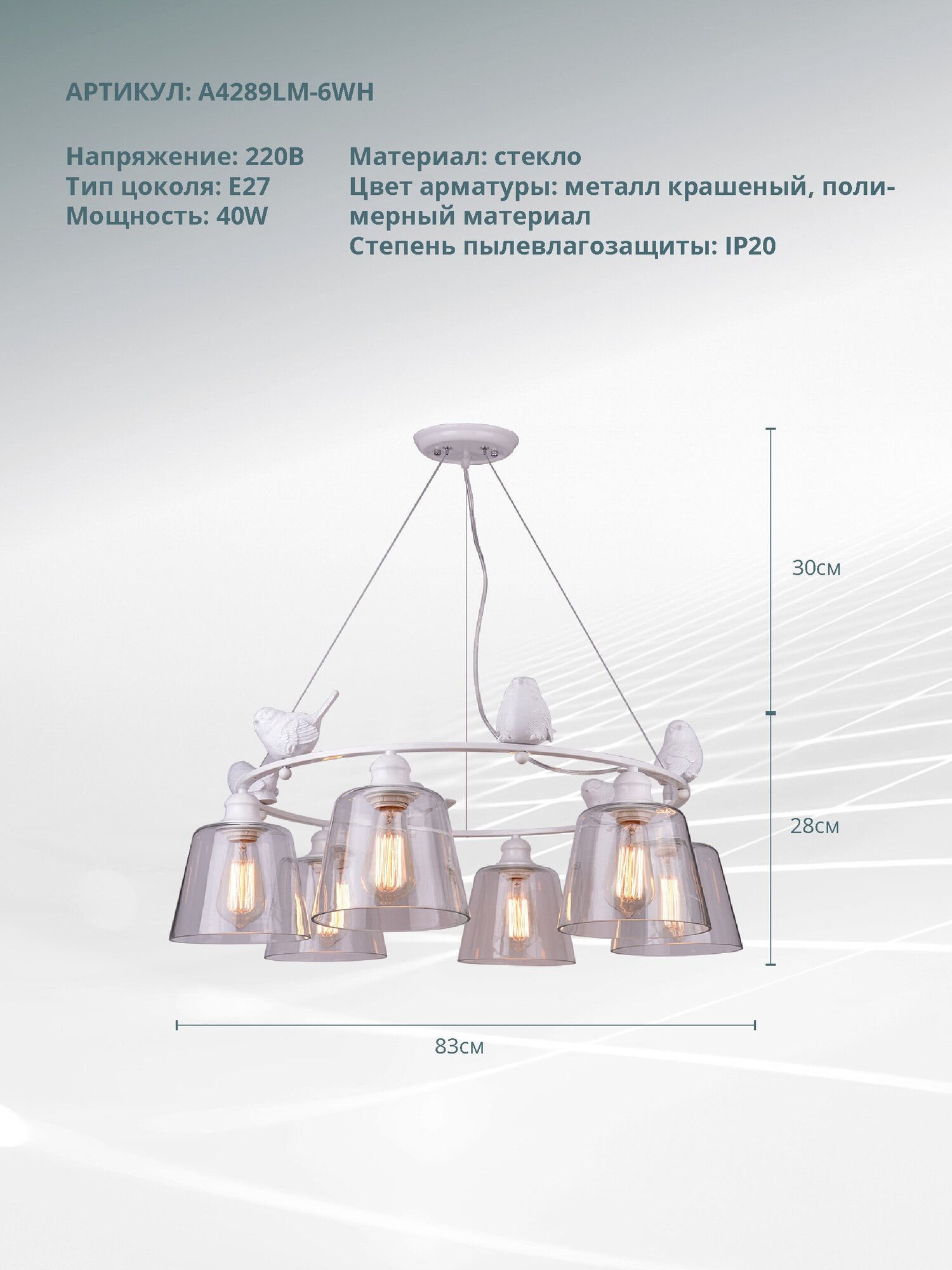 СохранитьСветильник подвесной Arte Lamp A4289LM-6WH интересное: