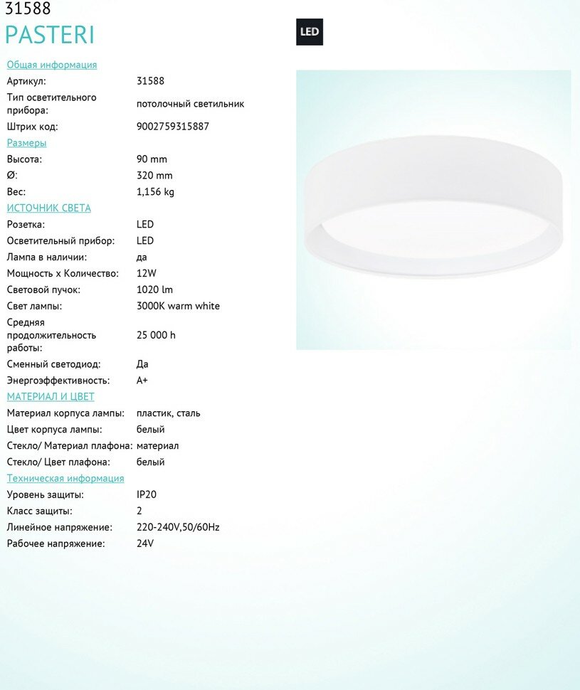 Ниже Вы можете прочитать отзывы на Светильник потолочный Eglo PASTERI, 31588, 12W, LED, ознакомится с подробными характеристиками, посмотреть интересные обзоры и фотографии на Светильник потолочный Eglo PASTERI, 31588, 12W, LED.