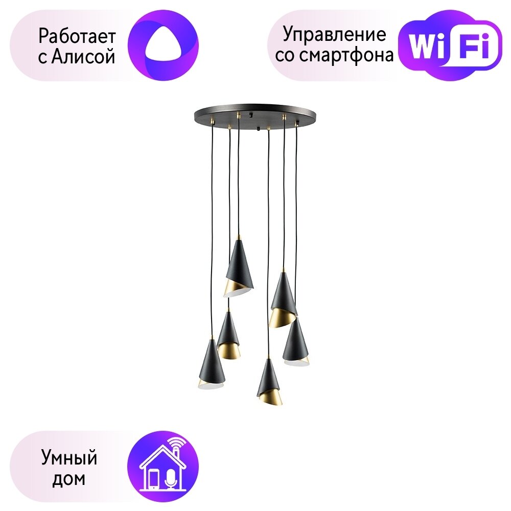 Lightstar 757060 (MD9700-6A ) Люстра CONE 6х40W E14 черный /золото (в комплекте)