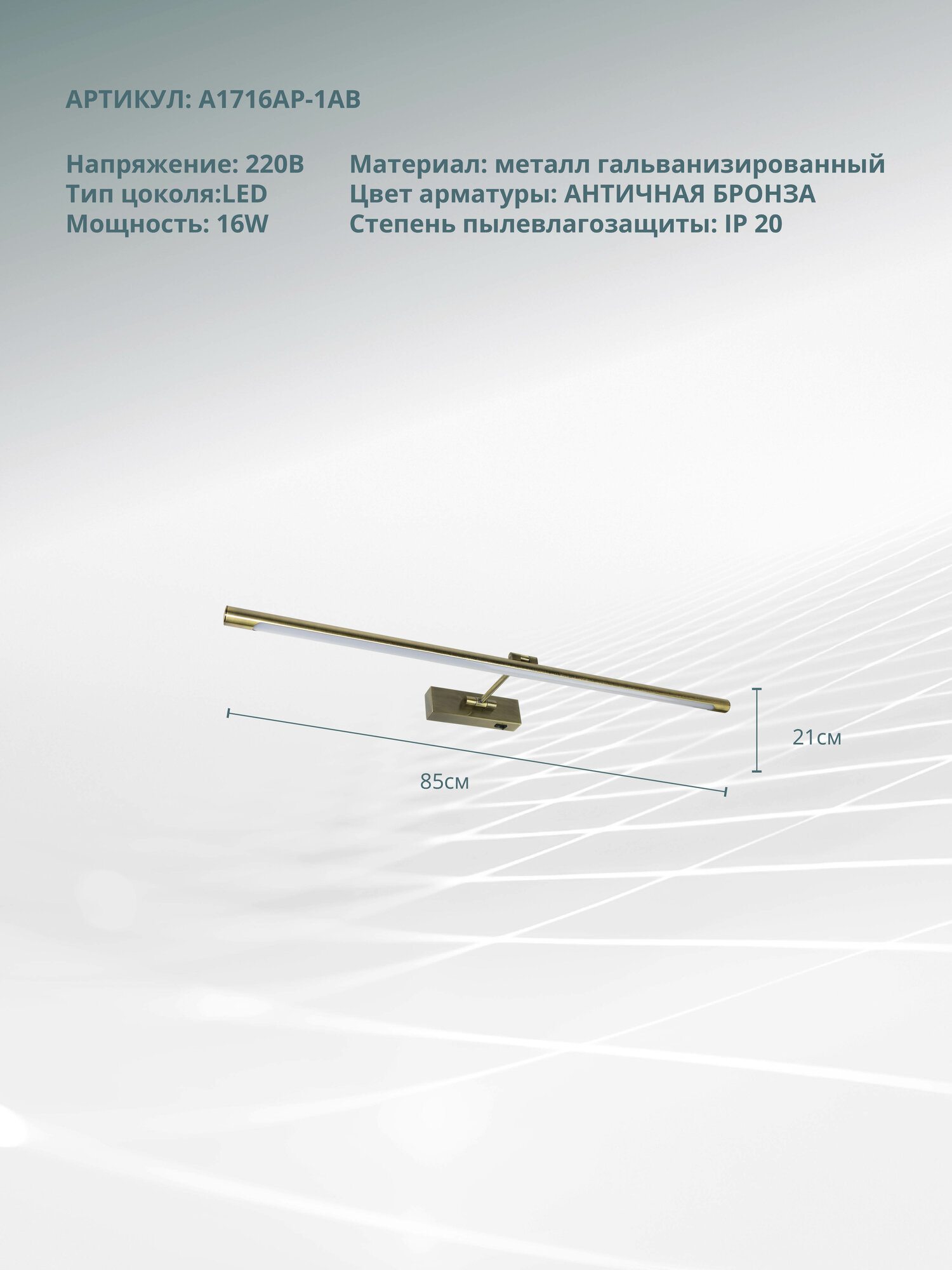 Ниже Вы можете прочитать отзывы на Подсветка для картин Arte Lamp HARRISON A1716AP-1AB / LED / 16Вт / 4000К / 1000Лм / бронза, ознакомится с подробными характеристиками, посмотреть интересные обзоры и фотографии на Подсветка для картин Arte Lamp HARRISON A1716AP-1AB / LED / 16Вт / 4000К / 1000Лм / бронза.