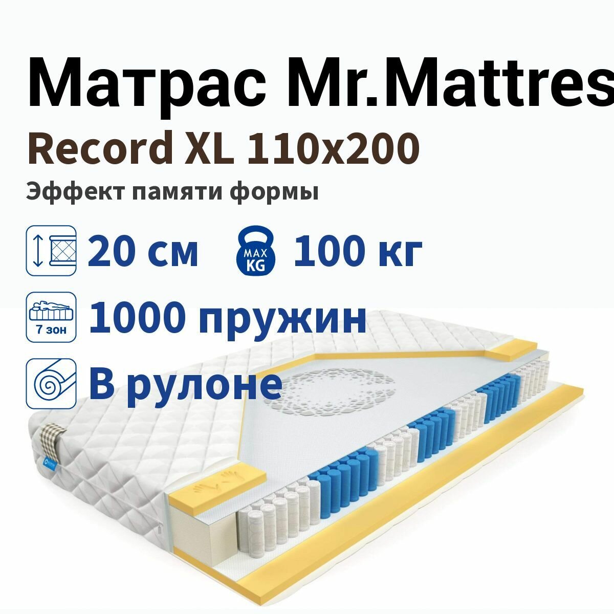 Матрас Mr.Mattress Record XL, Размер 100х200 см