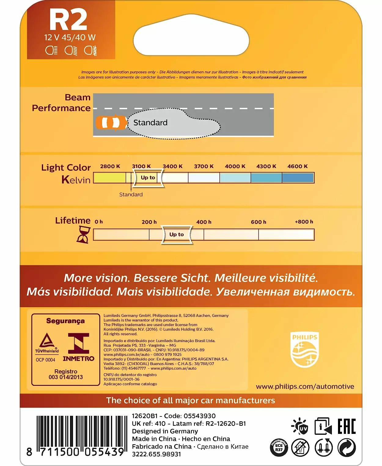 Лампа автомобильная PHILIPS R2 45/40W P45t-41+30% Vision (бл.) 12V, 1шт, 12620B1
