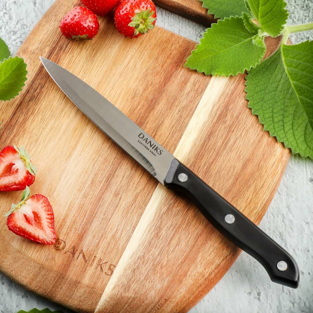 Нож кухонный Daniks, Классик, универсальный, нержавеющая сталь, 12.5 см, рукоятка пластик, YW-A111-TY интересное: