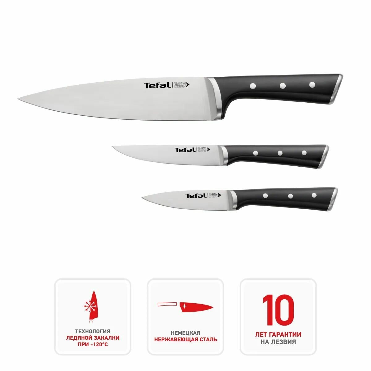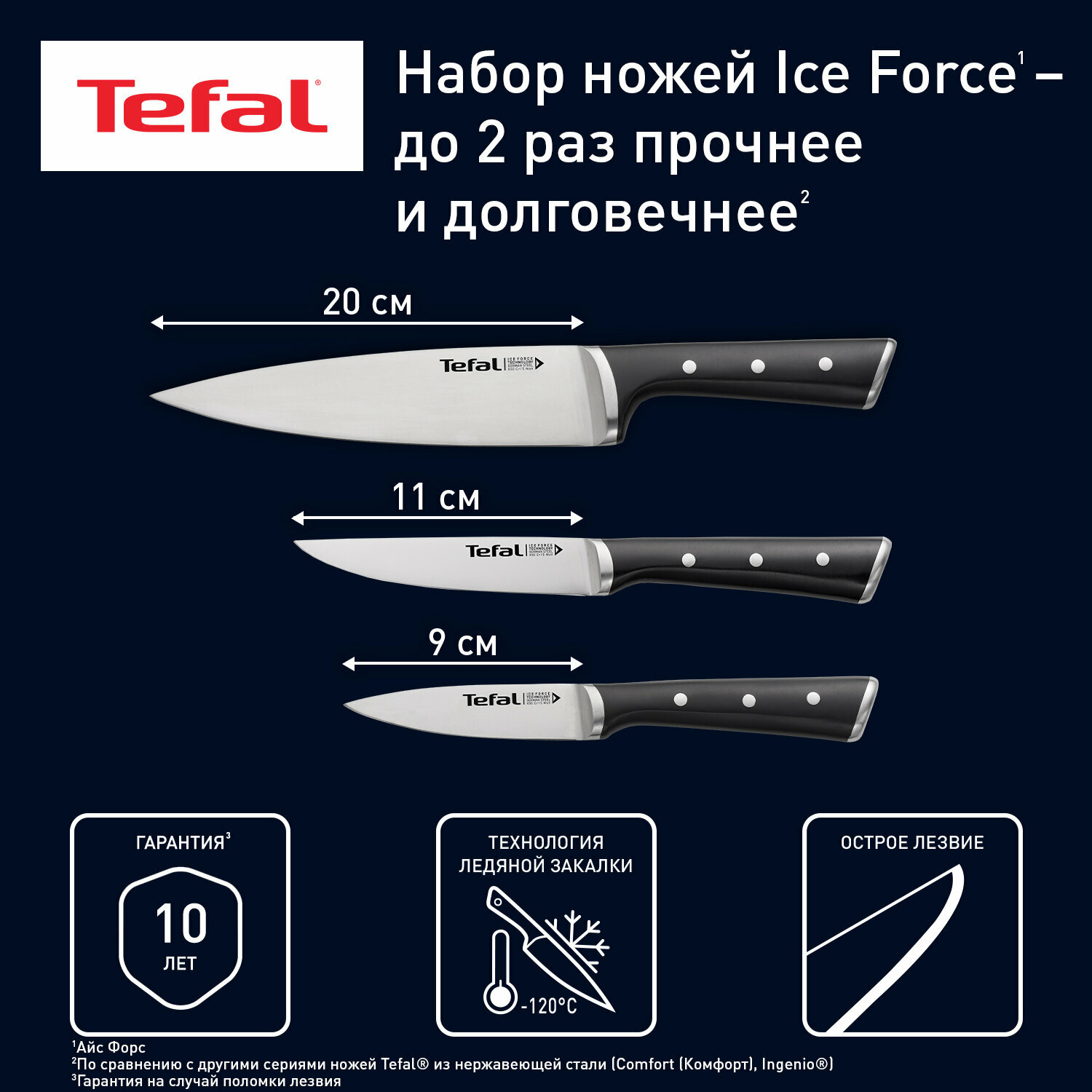 Набор ножей Ice Force Tefal 3 предмета: шеф 20 см, универсальный 11 см, овощной 9 см, эргономичная рукоять с заклепками интересное: