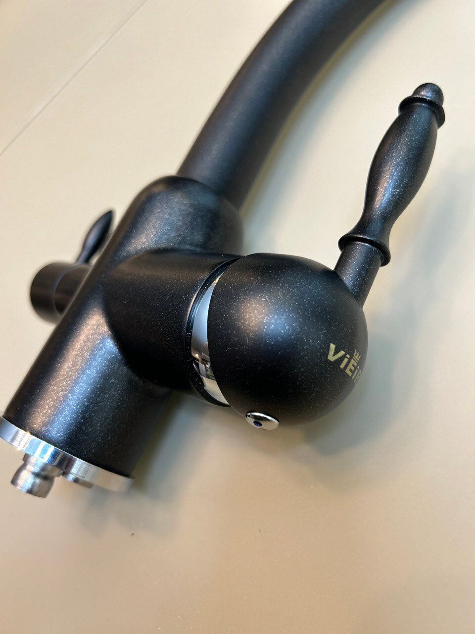 Смеситель для кухни из латуни с поворотным изливом под фильтр V15003-C1 от бренда Vieir цвет черный оникс