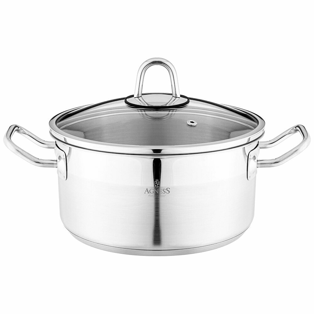 Кастрюля с крышкой Agness 20х10см, 2.8л, нержавеющая сталь, стекло